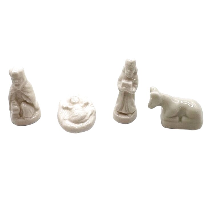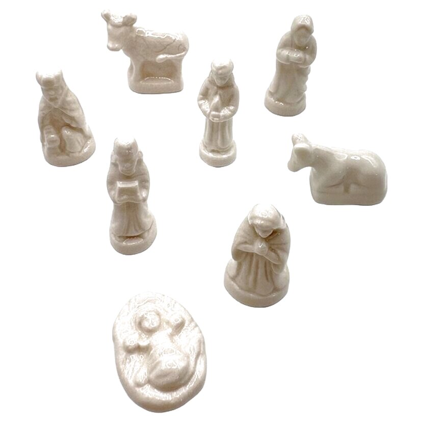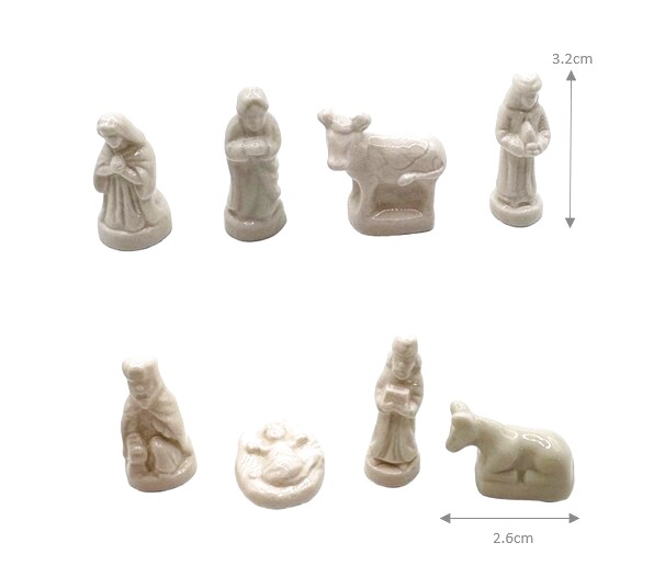 マリアやヨセフ、幼子イエスと家畜たちが、やさしい生成色の陶器で表現されています。